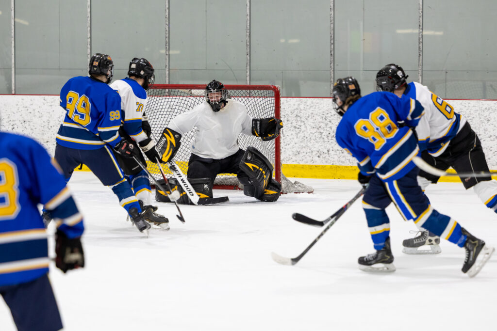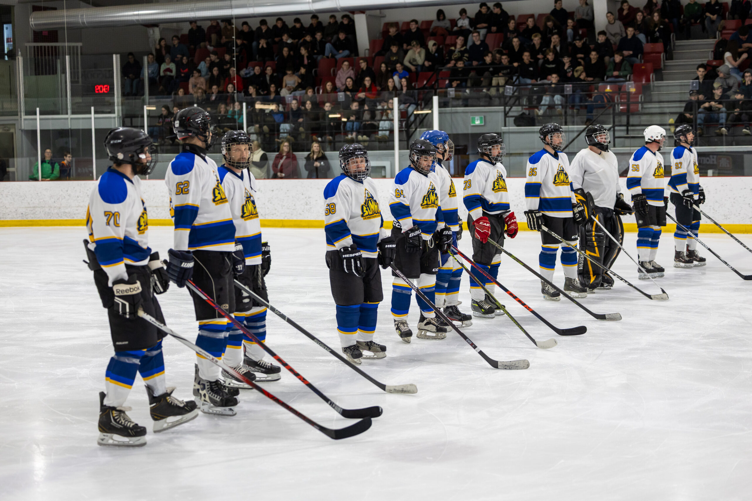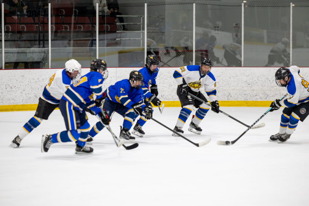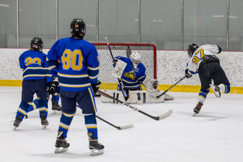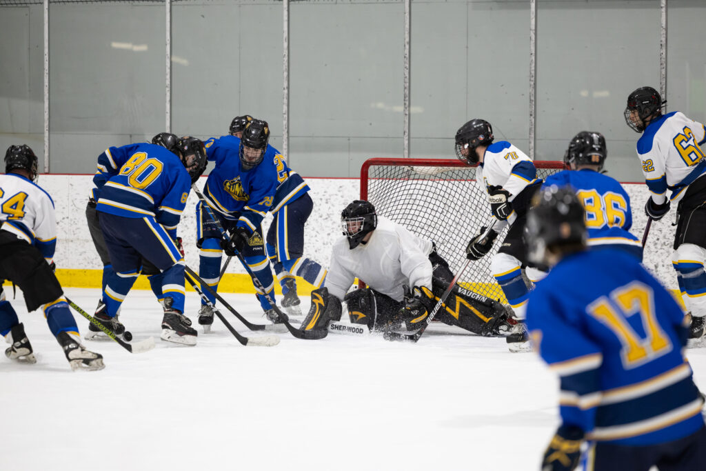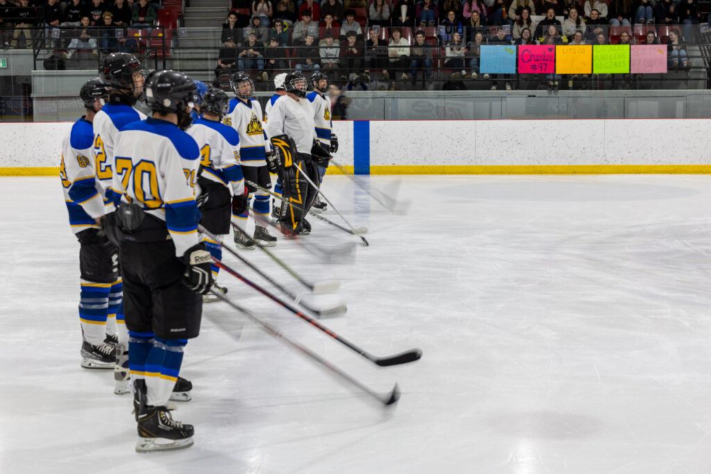 Pour clore en beauté la semaine Prof vs Élèves, l’équipe de hockey M18 de l’école a affronté nos meilleurs patineurs parmi les membres du personnel, lors d’un match enlevant tenu le jeudi 2 avril dernier. Rivalité amicale, intensité sur la glace et stratégies étaient au rendez-vous ! Ce duel sportif a offert un excellent spectacle aux élèves de l’école venus les encourager et a permis de renforcer l’esprit d’équipe et la camaraderie entre élèves et enseignants. Un moment mémorable que nous sommes heureux de partager avec vous en images !