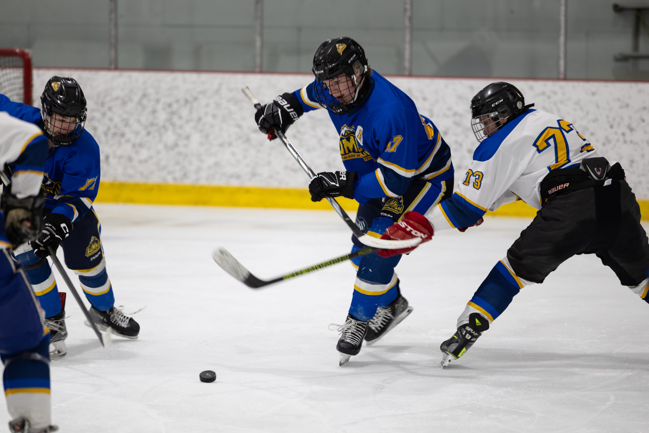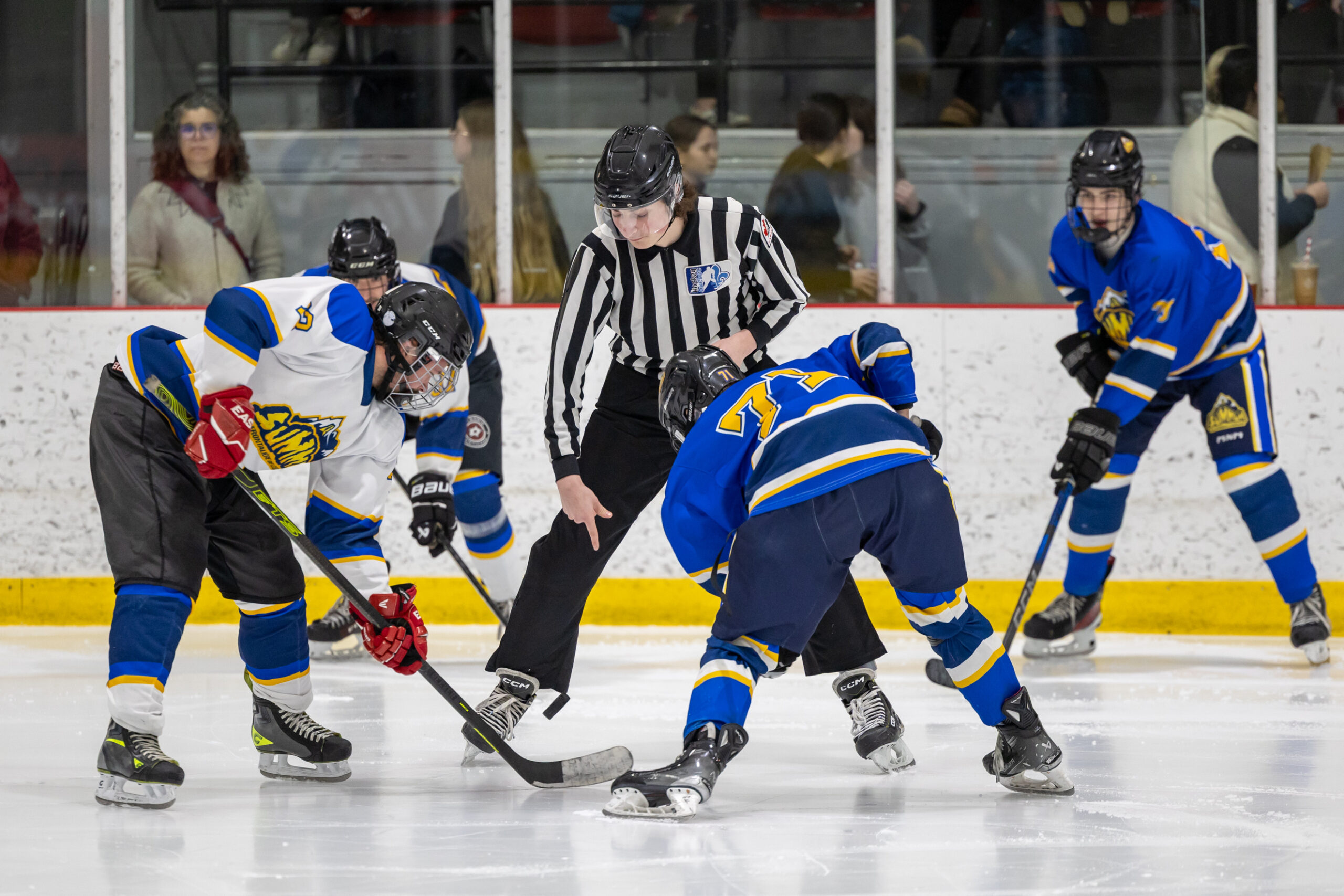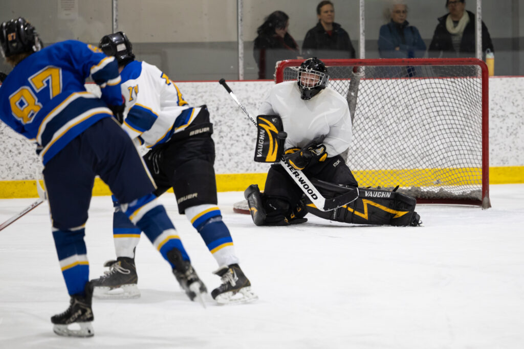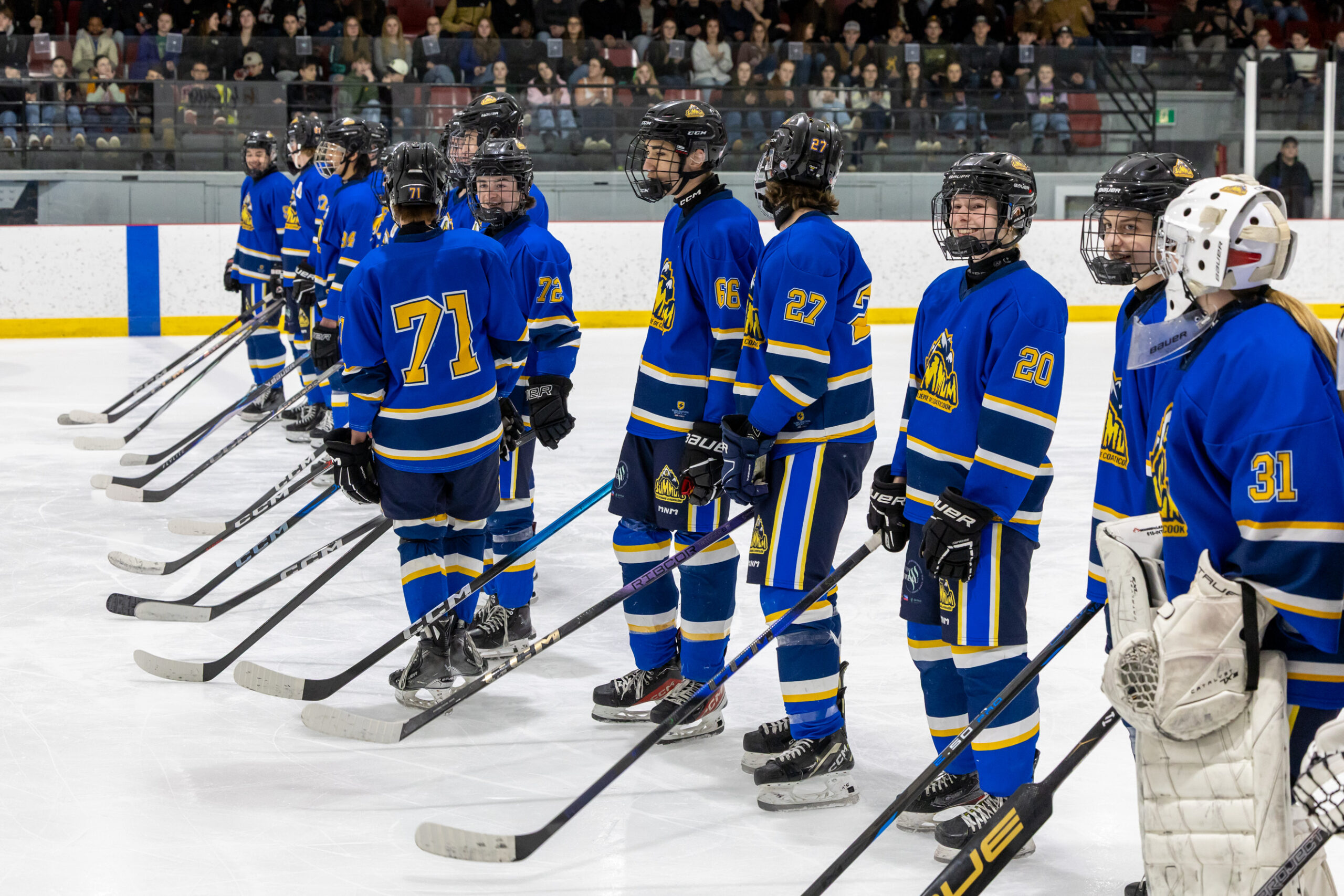 Pour clore en beauté la semaine Prof vs Élèves, l’équipe de hockey M18 de l’école a affronté nos meilleurs patineurs parmi les membres du personnel, lors d’un match enlevant tenu le jeudi 2 avril dernier. Rivalité amicale, intensité sur la glace et stratégies étaient au rendez-vous ! Ce duel sportif a offert un excellent spectacle aux élèves de l’école venus les encourager et a permis de renforcer l’esprit d’équipe et la camaraderie entre élèves et enseignants. Un moment mémorable que nous sommes heureux de partager avec vous en images !