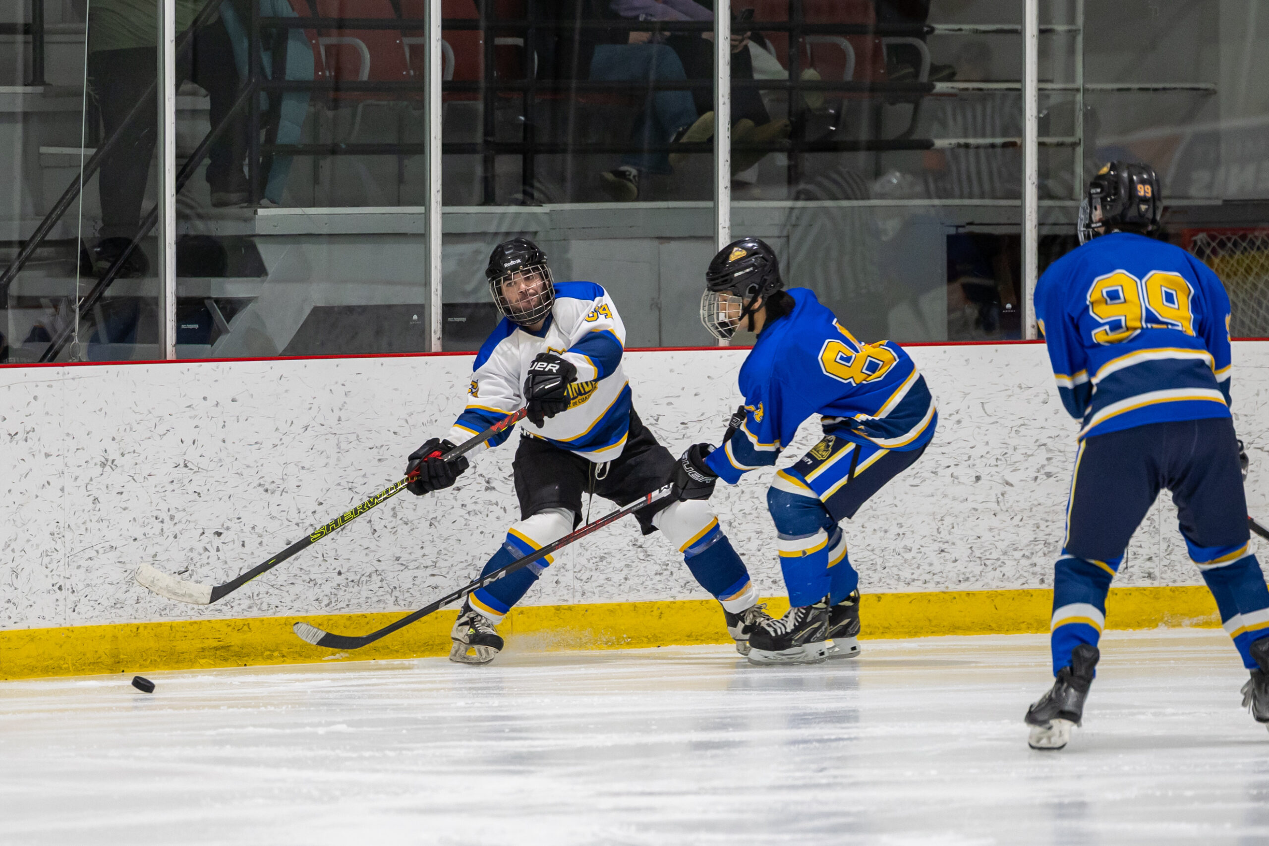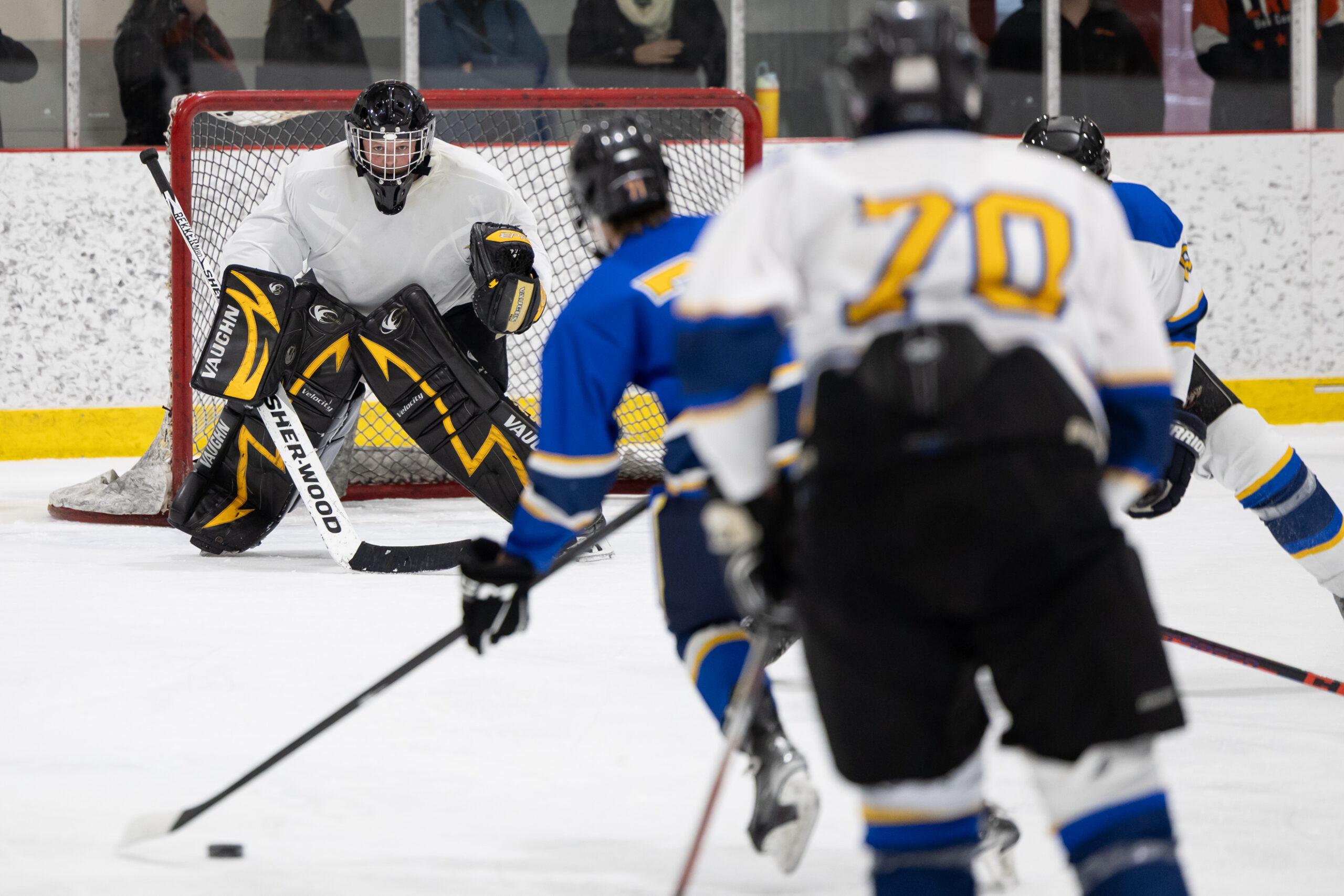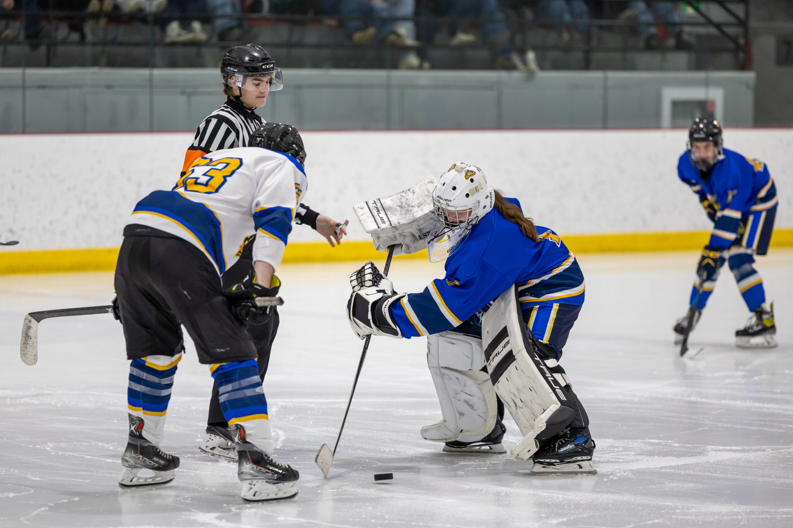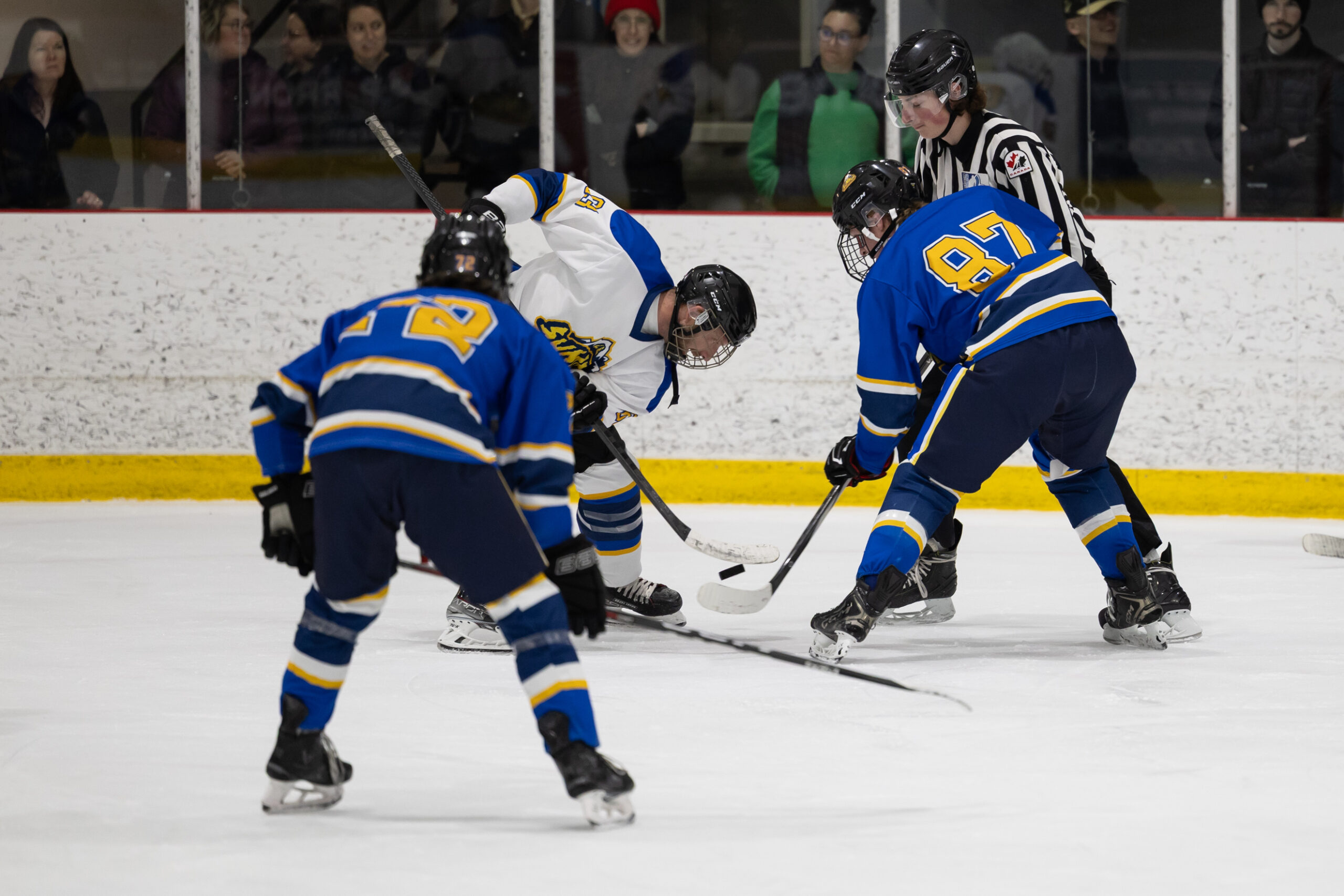 Pour clore en beauté la semaine Prof vs Élèves, l’équipe de hockey M18 de l’école a affronté nos meilleurs patineurs parmi les membres du personnel, lors d’un match enlevant tenu le jeudi 2 avril dernier. Rivalité amicale, intensité sur la glace et stratégies étaient au rendez-vous ! Ce duel sportif a offert un excellent spectacle aux élèves de l’école venus les encourager et a permis de renforcer l’esprit d’équipe et la camaraderie entre élèves et enseignants. Un moment mémorable que nous sommes heureux de partager avec vous en images !